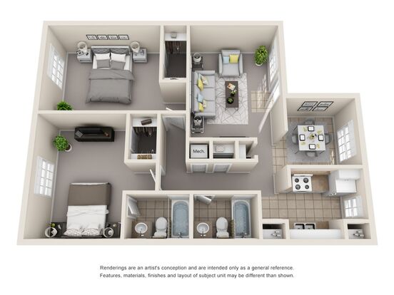 | 1BR | $848 | $1.10 | $2,544 | |