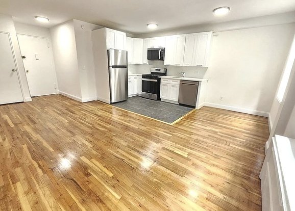 Welcome to this beautifully renovated one-bedroom corner unit in an elevator condominium building in the heart of Pelham Bay. Step into a spacious living room and decorate it with your most confortable furniture and in any layout setting. This sun-filled living room featuring three windows with leafy treetop views and an open-concept layout. The modern kitchen showcases large tile flooring, stone countertops, and a full stainless steel appliance package including refrigerator, oven, microwave, and dishwasher. Soft-close cabinets and drawers provide ample storage, and the flexible layout allows you to choose the perfect spot for your dining area.