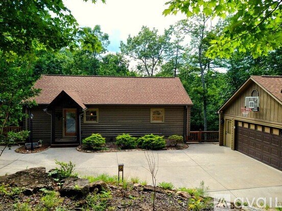 This rustic cabin is nestled in the Lakemont Highlands Community. The multi-level home features four bedrooms and two and a half bathrooms, along with breathtaking mountain views.