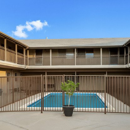 This downstairs two bedroom one bath apartment includes fresh paint, plank flooring, ceiling fans and large closets in both bedroom. Located in a gated building with a community swimming pool and laundry room. Unit comes with one carport parking space.