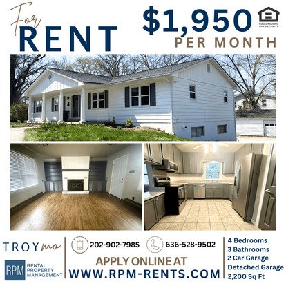 Welcome to the 3 BR 3 BA Ranch in Troy, MO, a stunning property that offers a perfect blend of comfort and convenience. This home boasts four spacious bedrooms and three full bathrooms, providing ample space for all your needs. The property is set on a generous 2-acre plot, offering plenty of room for outdoor activities. The house also features a 2-car garage, ensuring ample parking and storage space. Additionally, there is a detached garage/outbuilding, providing extra space for storage or potential for a workshop or hobby area. Located in the charming town of Troy, this home offers a perfect balance of rural tranquility and easy access to local amenities. Don't miss out on this fantastic opportunity to call this home yours.