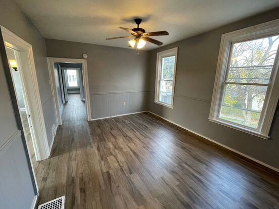 This 2 bed, 1 bath first floor apartment features lots of natural light, massive dining and living room areas, and large bedrooms with lots of space. High ceilings, big kitchen, and updated bathroom make this space a must see! Outside, find a huge side yard, storage shed, and a great neighborhood for families. Apartment has laundry room and washer dryer hookups in unit.