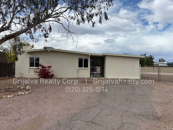 Available now! an updated 3 bedroom, 2 bath house with a large yard nestled in a cul-de-sac in east Tucson. AC cooling plus ceiling fans. The kitchen is equipped with an electric stove, refrigerator, dishwasher, and microwave. Tile flooring throughout. Large walled yard. Close to Davis Monthan AFB.