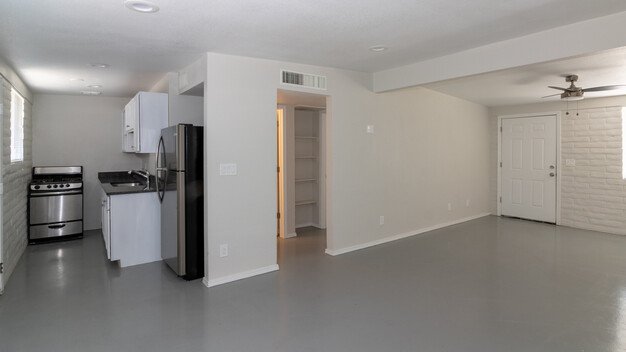 1 bedroom home is gated community near Stone and Prince - Recently renovated home with luxurious granite countertops, stainless steel appliances including a gas stove. Enjoy the bright apartment with new subway tiling in the bathroom, LED recessed lighting, ceiling fans, and easy care custom concrete flooring. Each apartment has security doors, features custom colors, blinds, and a dining area.