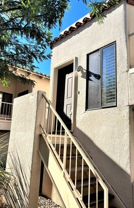 Live the resort live at La Paloma Condos. This upper level spacious two bedroom condo features vaulted ceilings, loads of natural light and a unique kitchen with loads of cabinets. Great room features a wood burning fireplace, and access to a spacious balcony/deck. Split floorplan with both bedrooms having their own bathroom great layout for roommates. Condo also features a laundry room and storage closet off of the one car garage. Great location for hiking, golf, shopping, dining ++! The condos at La Paloma also feature a pool, spa, and clubhouse.