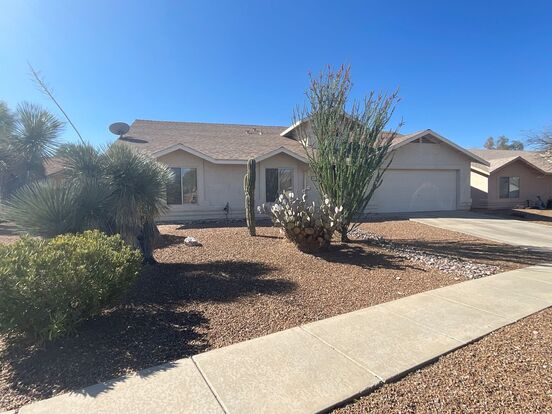 Welcome to the Rita Ranch Vail School District home in Tucson, AZ! This spacious 4-bedroom, 2-bathroom house boasts a large back yard perfect for outdoor activities and a convenient storage shed for all your belongings. Spacious L-shaped living room with formal dining area, large kitchen with vaulted ceiling, eat-in breakfast area, ceiling fan, lots of cabinets & counter space, refrigerator, gas range, microwave & dishwasher. Primary bedroom w/sliding glass door to covered patio, walk in closet & dual sink vanity. Second bath has a dual sink vanity as well. Full width covered patio facing south. Tile flooring except for bedrooms. Enjoy the community park just steps away for leisurely strolls or picnics. The large covered patio is ideal for relaxing or entertaining guests. Plus, pets are allowed, so your furry friends can enjoy the space too. Don't miss out on this fantastic opportunity to call this house your home!