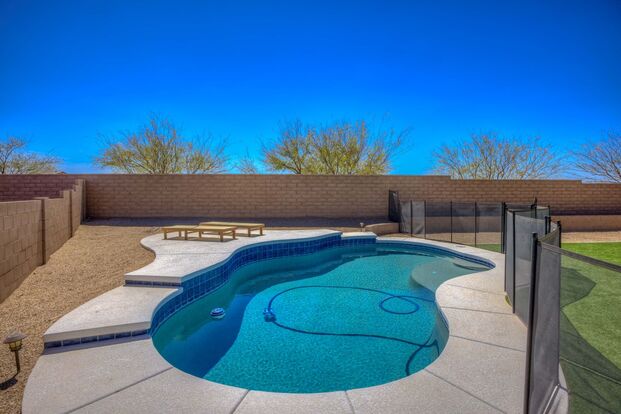 Available Now is this Contemporary Newer Home with Pool and Solar Electric in the popular La Estancia community and the Award Winning Vail School District. Lower level features the beautiful foyer leading open great room adjacent to the kitchen and dining. The kitchen features the slate cabinets with dusty white granite countertops, breakfast bar, gas range and pantry. Upper level features the loft, 3 bedrooms and the large laundry room with utility sink, cabinets and plenty of storage shelving. The master ensuite has the dual sink vanity, walk-in shower and large walk-in closet. Lots of tile flooring with carpet in loft and bedrooms, plantation shutters and ceiling fans throughout. Guest bath offers dual sink vanity and shower/tub. Backyard features extended patio with ramada, the low care landscaping with faux grass, and the refreshing heated pool. Solar Electric provides huge savings. Tenant to pay $200 towards solar electric. La Estancia features great community amenities such as parks, playgrounds, pickleball court, pools and splash pad. Easy access to The Loop Bike Path. Call to see this home today!