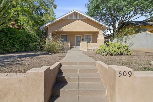 Charming 2 bedroom bungalow, with optional den, workout room or 3rd bedroom. This historical home built in 1919 with all the ambience is near UA and 4th Ave! It's perfectly situated - close enough to the action but tucked away in a peaceful spot. Just four blocks from the University of Arizona and one block from the famous Time Market, the streetcar, and 4th Ave.