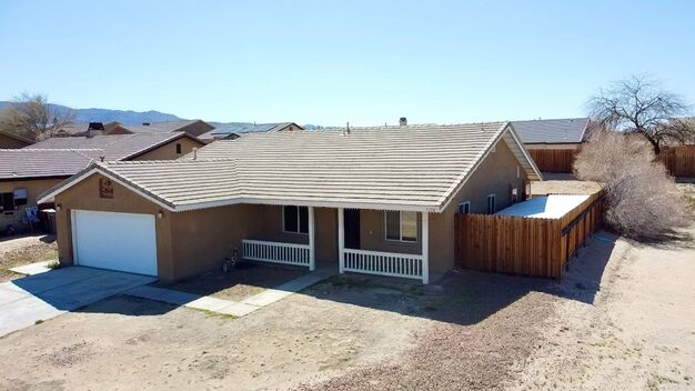 Wow great 4 bedroom 2 full bath double sinks in master. House is in newer neighborhood which features curbs and sidewalks. New carpet and tile flooring. Kitchen has granite countertops, stove, dishwasher and pantry. Living room with fireplace has open concept with kitchen area. In house laundry room with plenty of cabinets. Large eating area in dining room. 2 car garage with wooden fence in backyard. Close to downtown, Joshua Tree National Park and USMC base. Come take a look! Offered by LibbysRealty.com 760.367-9521