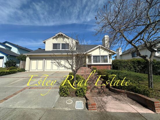 Estey Real Estate & Property Management presents this lovely two level single family home with 3-car garage. Living room with cozy fireplace that is cleaned every other year. Kitchen has lots of cabinet space and a lovely eat at counter with chairs. There is also a breakfast nook area that overlooks the backyard. Kitchen has side by side refrigerator, stainless steel microwave, oven, dishwasher, and flat electric stove in counter top. Formal dining room in with formal living room. Large office above garage that has built in cabinetry great for office. Laundry room with electric hook-ups for washer and dryer or use that ones that the owner has left for your conscience. One bedroom and full bathroom on main floor. Primary bedroom on 2nd floor has lots of closet space and hilltop views. Primary bathroom has double sinks, large tub and shower. Large entertaining deck off family room with roof top views. Lower yard is fenced and terraced with fruit trees. There is a gardener that maintains the yard bi-annually.