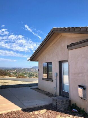 Cruise up your driveway as you make your way towards this 1 bed 1 bath, 864 sq.ft flat in mountainous Valley Center. This unit is bright, open and freshly painted with tile throughout. The kitchen offers lots of cabinet space, granite kitchen counter tops and is furnished with an oven/range, refrigerator and microwave. Double entry way access from your kitchen and bedroom to the bathroom provides convenience and ease as you make your way through the home. Tub/Shower enclosure surrounded with tile. These beautiful unobstructed views is something you won't want to miss. Not only do they offer unforgettable sights and starry nights but also provide bright natural lighting that flow into the home.