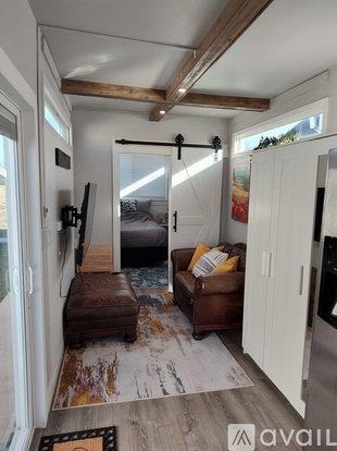 Discover the perfect blend of modern comfort and rustic charm in this fully furnished 1-bedroom, 1-bath shipping container home. Thoughtfully designed, it features a spacious kitchen with a full-size refrigerator, a washer/dryer combo for your convenience, a cozy queen bed, and a 55" smart TV for relaxing evenings. UTILITIES INCLUDED: electricity, internet, sewer and water.