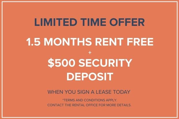 1.5 Months Rent Free + $500 Security Deposit