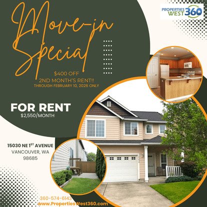 New Year Move-in Special! $400 off second month's rent, if approved and moved in by February 10, 2026!
