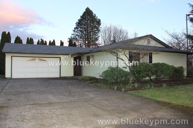 3 bedrooms, 2 bathrooms home with 2 car garage near Mill Plain Town Center and Mt View High School. This home has a great room floorplan, laminate flooring and recessed lighting through out. It has a spacious kitchen with baker's island and eatery bar, granite countertops, plenty of cabinets, a pantry and stainless steel appliances. A sliding glass door leads to the backyard with covered patio and a fully fenced yard. There is a laundry closet for your machines. The main bathroom has a tub/shower combo and vanity with drawers and under sink storage.. The bedrooms are generously sized. It does have a master bedroom with a three door closet and a bathroom with a shower and large vanity with great storage space. Pets are welcome with 40 lbs max weight limit. No cats. $800 refundable pet fee. Tenants maintain the yard. Tenant pays all utilities. No HOA. No AC. View our VIDEO tour at www.bluekeypm.com.
