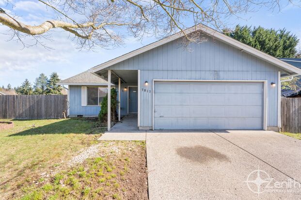Charming 3 bedroom, 2 bathroom, 1089 square foot corner lot home in Orchards! This home offers a cozy layout featuring, living room, dining area, and kitchen with a ceiling fan! Primary bedroom with a ceiling fan and full bathroom! This home features a beautiful fully fenced backyard with a rear patio, and storage shed providing ample space! Convenient attached two-car garage! Perfectly located off of Fourth Plain Blvd, less than a minute away from shopping and dining! Apply now!