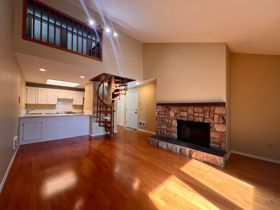 Welcome Home! This charming upper-level condo at Park Place Condominiums! This cozy 1 bedroom, 1 bathroom unit features wood laminate flooring, a (decorative only) fireplace, and an updated kitchen and bathroom. The bedroom boasts built-ins and there is a loft space that can be used as an office or second bedroom, accessible via a unique spiral staircase. Enjoy the convenience of having all appliances included and trash services covered in the rent. Step outside onto the enclosed patio/balcony and take in the surrounding area, which is close to freeway access and Vancouver Mall. With loads of charm and character, this condo is the perfect place to call home. Electric wall heat / No AC. HOA Rules Apply.