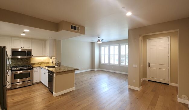 Welcome to this stunning 3-bedroom, 2.5-bathroom home located in the beautiful city of Ventura, CA. This property boasts a range of high-quality amenities that ensure a comfortable and luxurious living experience. The interior features plush carpeting, laminate and tile flooring, adding a touch of elegance to the space. The kitchen is a chef's dream with a gas stove, stainless steel fridge, dishwasher, and microwave, all complemented by sleek granite countertops. The home also includes a convenient pantry for extra storage. The bathrooms are well-appointed with a shower tub and double sinks. All bedrooms features a spacious walk-in closet, perfect for your storage needs. The home is also equipped with a water softener system, ceiling fans, and recess lighting for added comfort. The plantation shutters and window coverings provide a perfect balance of privacy and natural light. The property also includes a 2-car garage with an opener for easy access. The washer and dryer are included, adding to the convenience of this home. This property truly offers a blend of comfort and style, making it a perfect place to call home. Conveniently located near shops, freeways, schools and parks.