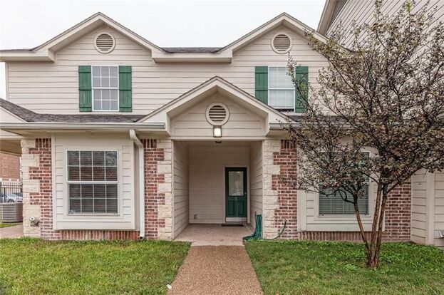 Well-maintained 3 bedroom/3 bathroom condo in the Brownstone Condominium gated community just down from Baylor. This condo features an open floor plan, raised ceilings, stained concrete floors throughout downstairs, carpet in bedrooms, and tiled bathrooms. Each room has its own full bath with 2 bedrooms and 2 baths located upstairs and 1 bedroom and bath downstairs. Kitchen features stove, microwave, fridge, dishwasher, lots of cabinet space, plus an eat at bar.