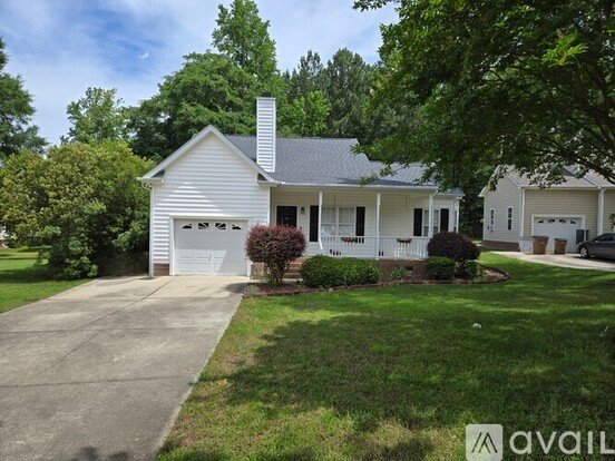 Cute ranch home convenient to downtown Wake Forest, parks and shopping. 3 bedroom, 2 bath home with a rocking chair front porch, fenced in back yard plus a deck. Inside, the living area has vaulted ceilings, engineered hardwoods throughout the home, dining area and kitchen with bay window and white cabinets. Primary with walk in closet and double vanities. Quiet cul-de-sac living!