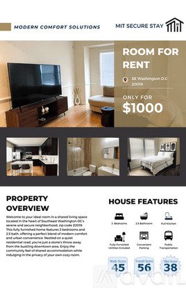 • Rent: $1000 per month (Utilities included)