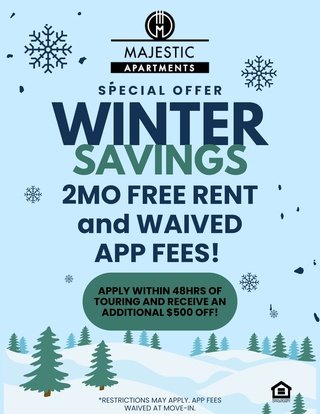 Welcome to Majestic, a stunning apartment community that offers studio, 1- and 2-bedroom floor plans fit to accommodate your lifestyle. Our apartments come with updated kitchens and bathrooms, large walk-in closets, and designer lighting. Our location is conveniently situated within close proximity to all that the Mount Pleasant area has to offer, including shops, restaurants, and Metro. Schedule an in-person visit now to learn more about making this special property your next home!