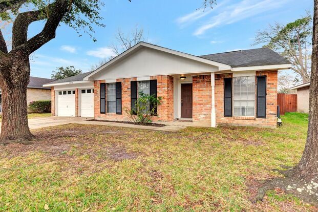 What a Gem! This beautiful 1 story home in the hear of Clear Lake is available for Lease. This beauty has 3 bedrooms, 2 bathrooms and 2 car garage. The home has tile and laminate throughout and carpet in the bedrooms. The living area features a brick accent wall with a fireplace. The primary also has the brick accent wall and if an amazing feature. The formal dining room is on an elevated platform in the living area. There is tons of space and is great for entertaining. Come enjoy the breeze in your spacious backyard. The neighborhood is great and very close to shopping centers and restaurants. Come view it today, it won't last long!