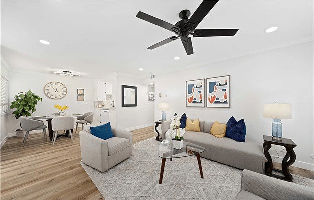 Discover low-maintenance, comfortable living in this beautifully updated first-floor condo, nestled within a sought-after 55+ gated cooperative in North Hollywood. This rare, front-facing unit is bathed in natural light and features modern upgrades like new laminate flooring and recessed lighting throughout.