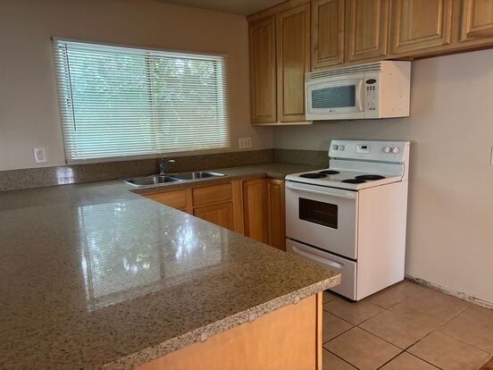 Renovated downstairs 1 bedroom 1 bath - Unit features beautiful cabinetry with granite counters, stainless steel sink, stove/microwave and tile floor. Bathroom includes a large vanity, re-glazed tub and tile floor, living room has laminate "wood-Like" floors, vertical blinds throughout unit, with a wall A/C. The building has an on-site laundry room with coin operated machines, a friendly and responsive on-site manager, a community BBQ area in the back, a swimming pool located in the center of the building surrounded by a lush tropical setting. 1 designated gated parking space, intercom entry and tenant only pays for electric bill (no gas or water). Sorry NO PETS.