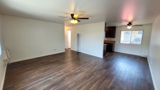 This lovely 2 bed 1 bath upstairs apartment has great light, custom paint, and gorgeous wood flooring throughout. This home features beautiful cabinets and granite countertops in the kitchen, a wall A/C unit in the living room, ceiling fans in every room, & an onsite laundry facility. Walk to the Greeneay Trail! Close to The Groves, and Uptown Whittier for local shopping, dining, and seeing a movie!