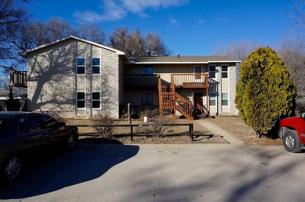 Large 2 bed / 1 bath upstairs apt w/d hookups in unit - MOVE IN SPECIAL -- your first month rent is free! 2 Bed 1 Bath apartment with central heat and A/C just south of Hwy 235 off Seneca for easy access anywhere in Wichita. Upstairs unit with a balcony off the dining room. Fridge, oven, and dishwasher supplied, W/D hookups in the unit. Owner pays trash, tenants pay water, electric, and gas services. Pets are allowed with $25/mo per pet, pet rent. All applicants over 18 much complete a non-refundable $35 application. Security deposit is $775 and due at lease signing. ***Pictures may be of a different unit with same floorplan.***