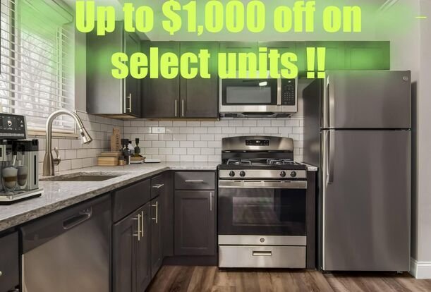 For a limited time, select apartment homes qualify for a $200 monthly rent credit applied over a 12-month lease term. This exclusive offer is available on select units only and subject to availability. Contact our leasing office today for details and to schedule your tour.