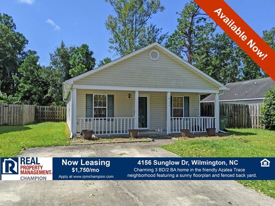 This charming 3 bedroom 2 bath home is located in the friendly neighborhood of Azalea Trace. This home features a sunny floorplan with a vaulted ceiling in the living room. The eat-in kitchen is loaded with cabinets and counter space and incudes an adjacent dining area. The master bedroom has a private master bath with a combination tub/shower. The two additional bedrooms are spacious in size and just steps away from the second full bath. The exterior features a covered front entry, spacious fenced back yard and off-street parking on a paved driveway. Front yard maintenance is included with the rent. Conveniently located to UNCW, CFCC, Historic Downtown Wilmington, ILM and Wrightsville Beach. Dog friendly rental. Students and Co-signers are welcome.