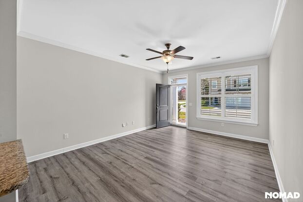 - Designer Finishes: Luxury vinyl plank flooring, plantation blinds, & crown molding.