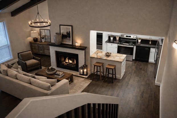 Welcome home to this beautiful condo featuring vaulted ceilings and abundant natural light. The open, split floor plan is highlighted by 18" tile flooring, neutral paint, and a cozy wood-burning fireplace.