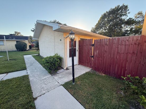 AVAILABLE NOW! Adorable 1 bedroom, 1 bath villa with fenced area, open patio, shed, all tile flooring, washer and dryer included. Living room/dining area combined, all appliances except microwave. Enjoy the pool and tennis courts too!